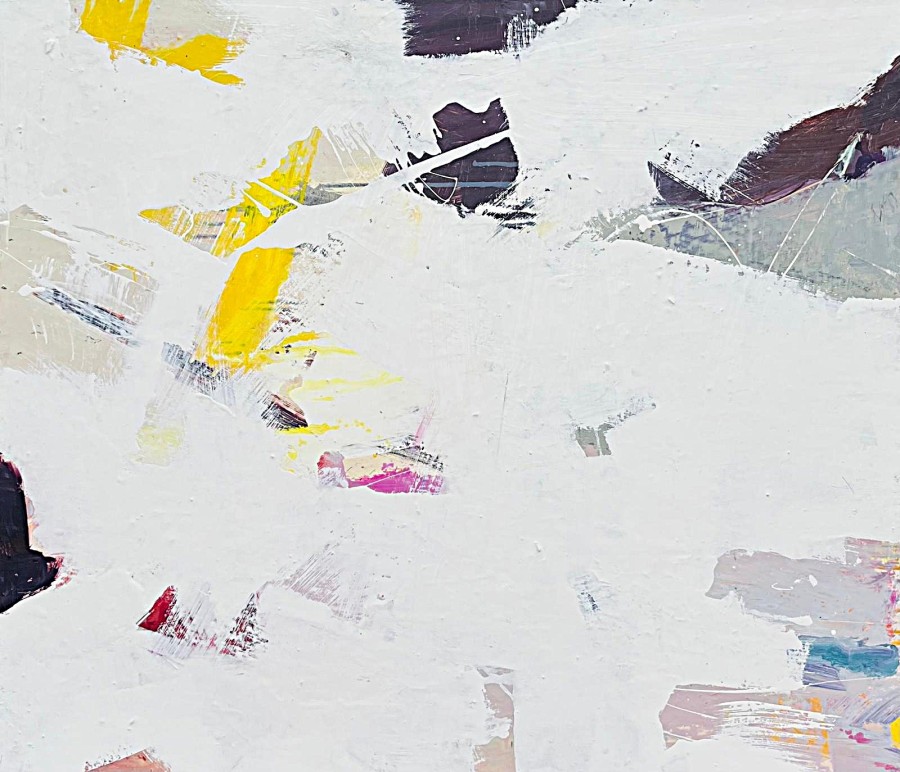 Een schilderij ontstaat zonder vooropgezet plan. Meestal bestaat het uit meerdere bewegingen van streken en lijnen – schrapen, opnieuw lijnen trekken – drogen en weer over bestaande verflagen heen. Een soms eindeloos lijkend proces dat – als het lukt - geleidelijk een associatie met ritme en beweging ontvouwt.