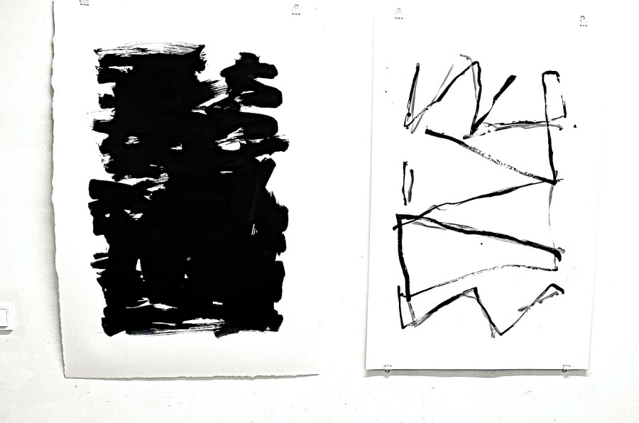 No titles | 2024 | 120 x 90 cm each | left: indian ink. Right: screenprint & crayon